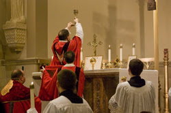As confirmation of that, Rev. Eric Flood, the Fraternity of St. Peter priest stationed at St. Pat’s, said, “I’d say at best we’re tolerated. I think we’d fit any sociological analysis done on a minority group. We’re often scared, thinking that we can’t speak our own mind or proffer our own opinion because what we say may take away the good things that have been handed us. I, myself, have been ridiculed when I’ve given talks about the Fraternity. I’ve been scolded by people who say, ‘You’re not with the church — get out of here. You’re the one causing the problems.’ In some churches Latin rite priests hide their missals from the pastor. I do know of some places where we’re not even allowed to advertise in the diocesan newspaper or even put out a sign saying, ‘Latin Mass here.’”