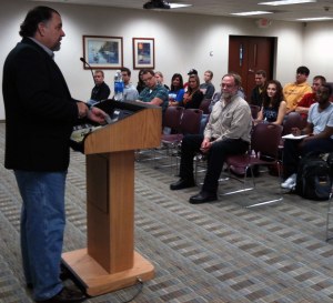 Krajicek addressing (UNO) University of Nebraska at Omaha students, ©photo by Jeremy Lipschultz
