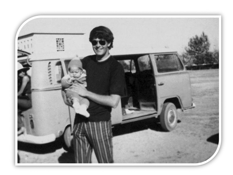 Tom Gouttiere holding his oldest son Adam in Afghanistan