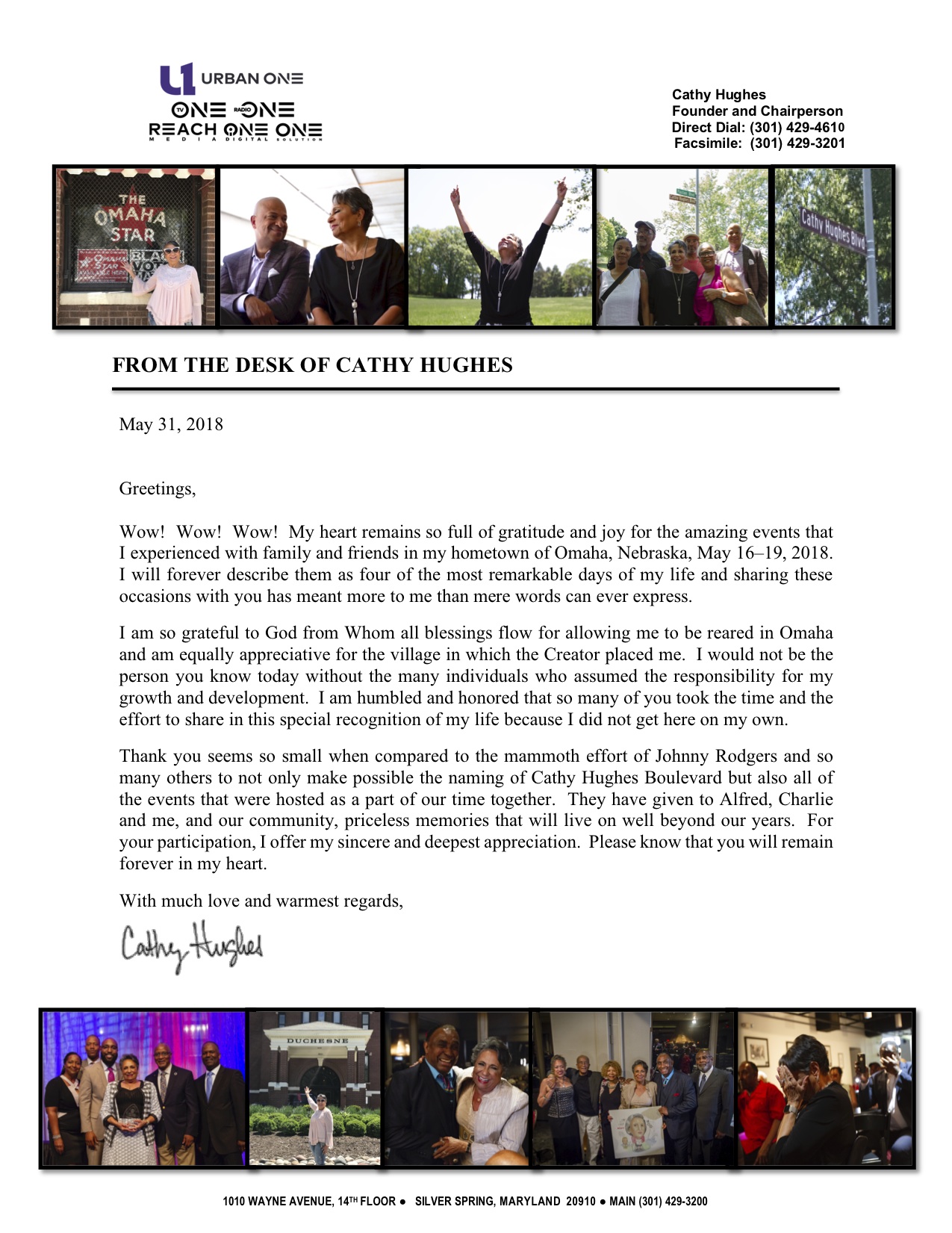 Years before in Omaha, she said Mildred Brown and Charles Washington “understood that information is power.” She learned from them and the folks who ran KOWH that black media isn’t just about a business, it’s about a community service.” That realization has informed everything she’s done with Urban One.