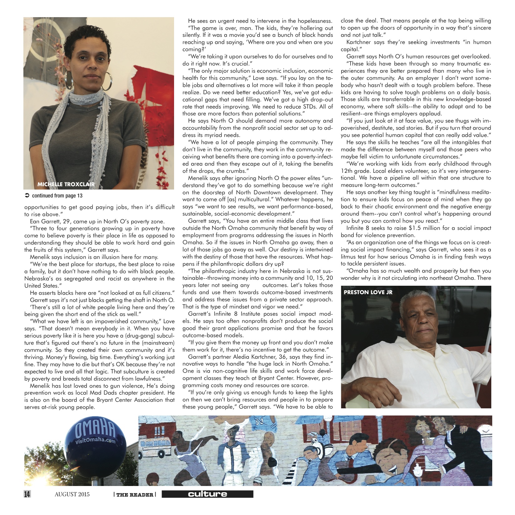 “I feel like there’s almost a patriarchal type relationship that always leaves North Omaha in a secondary position. At this point North Omaha doesn’t have the capital, in a lot of ways it doesn’t have the personnel, kind of by way of brain drain, to transition itself organically without outside resources. At this point it needs help from philanthropy and individuals whose hearts are in the right place, who simply want to do the right thing.