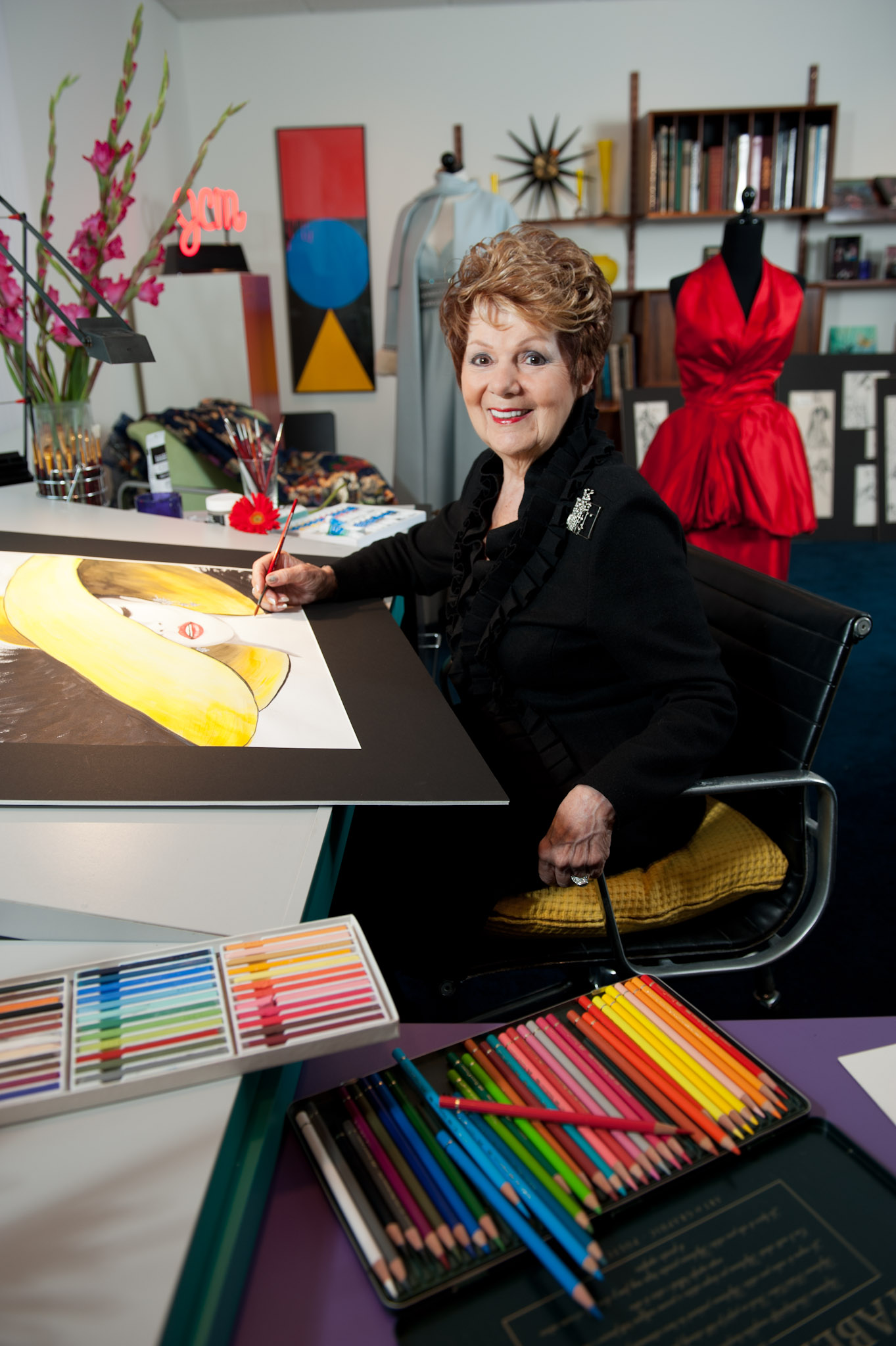 When still active as a fashion illustrator, it never crossed her mind to exhibit her work, she said, because commercial art was generally not considered museum or gallery worthy. That attitude has turned around in recent years. She is very much aware that the graphic art form she specialized in is making “a comeback” with young and old alike.