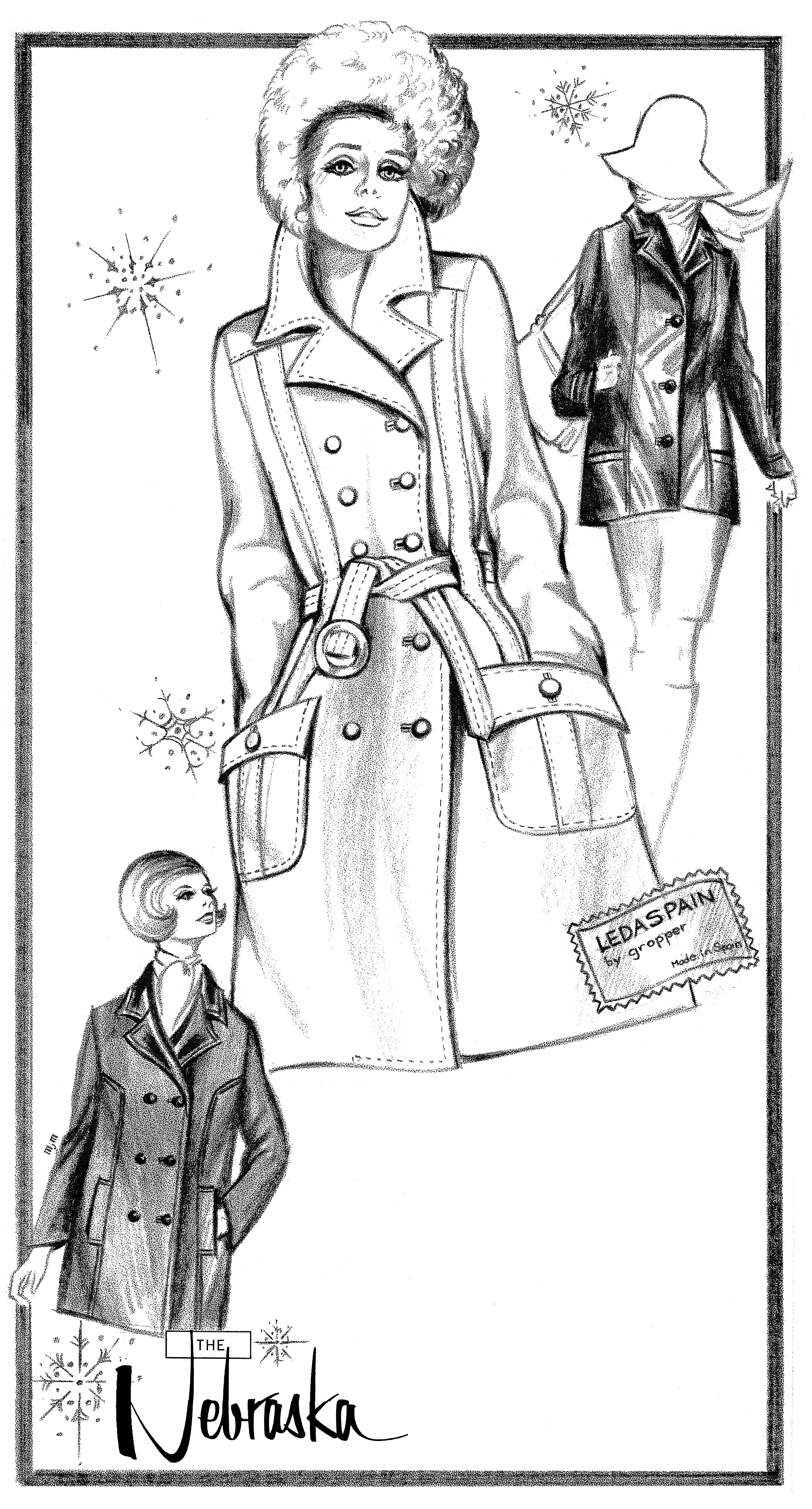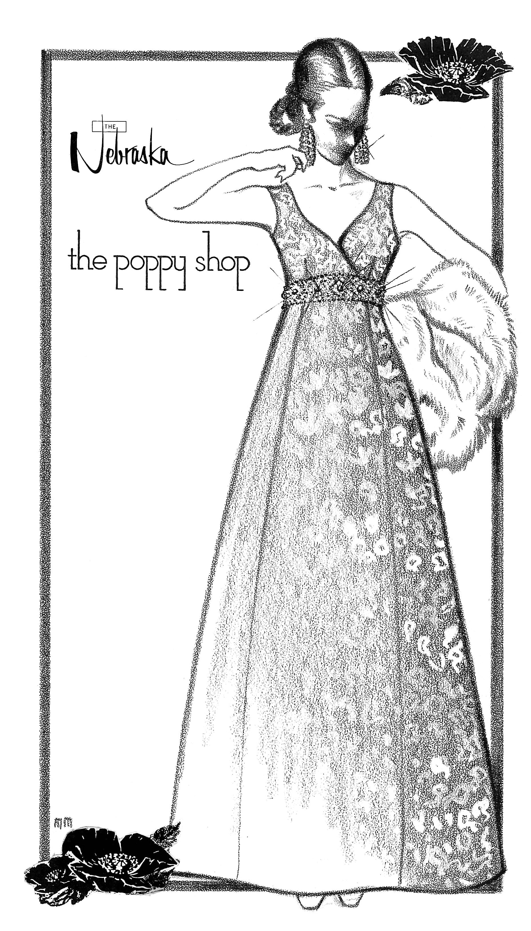 Mary pined to work full-time and to have her own professional identity. John, by the way, “supported anything I wanted to do,” she said. The opportunity to fulfill her creative hunger finally came when the family moved to Omaha in 1968. Scouring the classifieds she saw an ad that read, “Fashion illustrator wanted, Nebraska Clothing.” A venerable clothing store then, “The Nebraska” was renowned for its quality brand name selections. She called, made an appointment to interview for the job, and got hired on the spot.