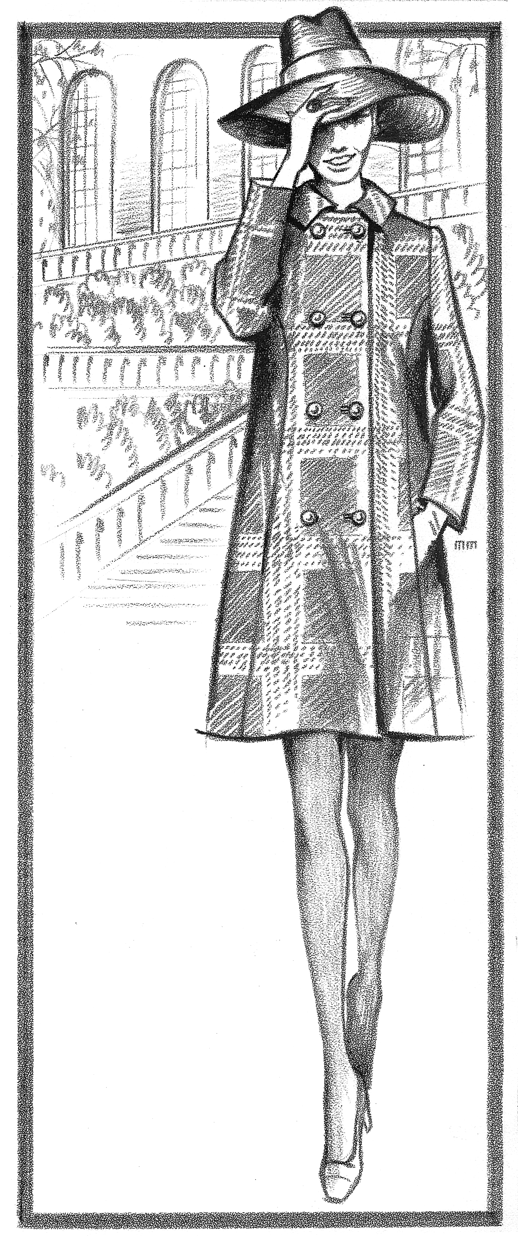 Once the parameters of the job were known, Mitchell arrayed the tools of her trade: pencils, pens, brushes, inks, paints, drawing paper. Her job then became animating the apparel and the figure wearing it to accentuate the fashion.