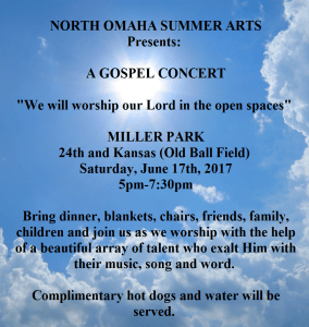 REMINDER: North Omaha Summer Arts presents Gospel Concert in the Park – Saturday, June 18