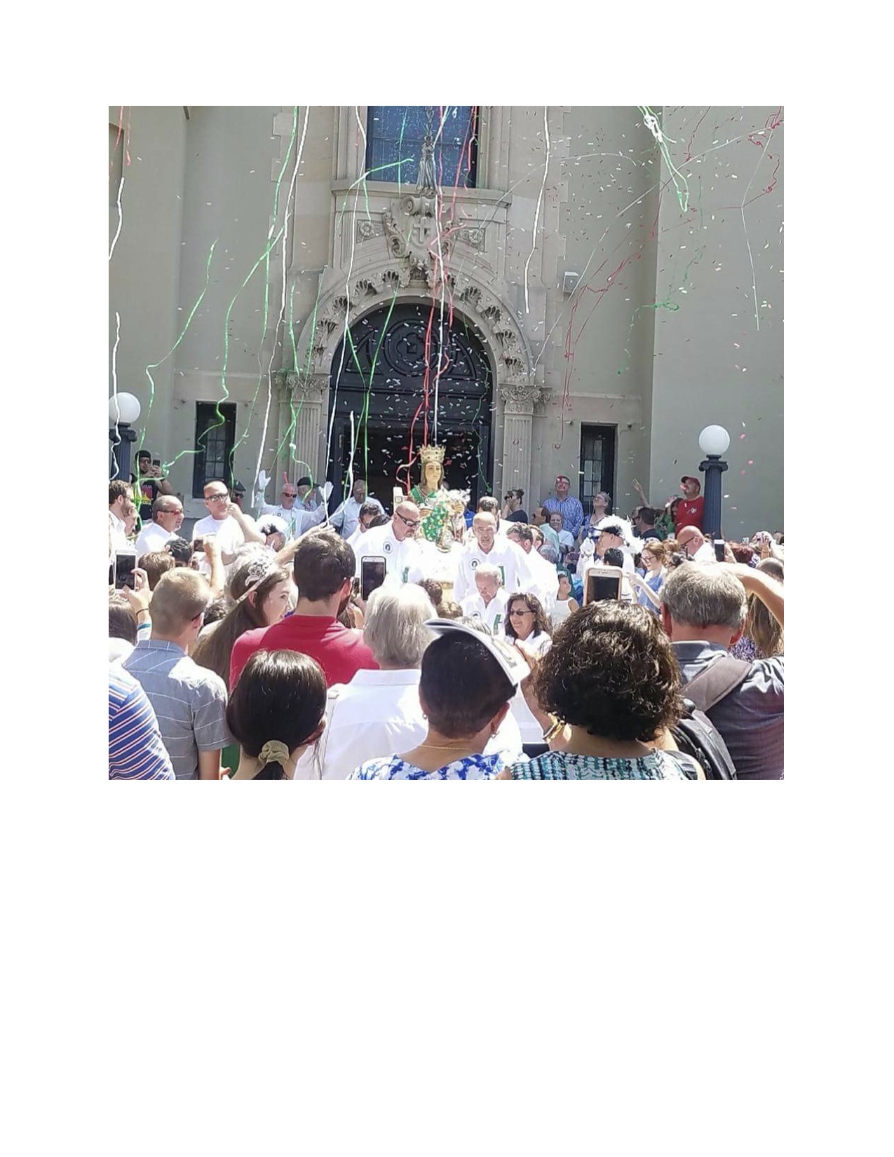 The festival, which has changed little since its beginning, features a carnival with rides and games, booths stocked with Italian foods (from sausage and peppers to meatballs to biscotti), a band playing traditional Italian music and a solemn Sunday mass at St. Frances Cabrini Church (which has been the site of the festival mass since the church was known as St. Philomena’s). A color guard comprised of uniformed and saber-carrying men from the Santa Lucia Society, each dressed in matching coat, cape, white gloves, bow tie and plumed hat, stands at attention beside the statue during portions of the service, which features the singing of the Santa Lucia song. The color guard accompanies the statue outside, where it is placed on the decorative float. The mass, which attracts an overflow crowd to the tiny church at 13th and William, is the festival centerpiece along with the procession and the crowning of the festival queen that follows it.